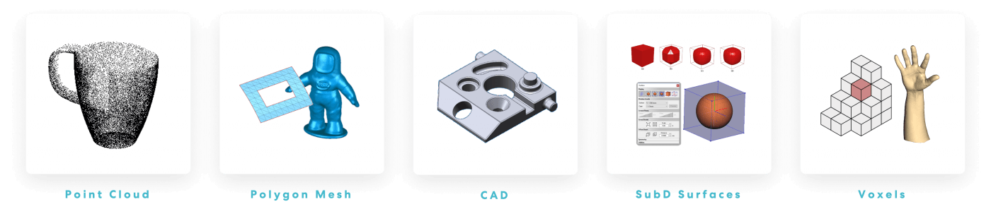 SubD (subdivisional) surfaces are often used in animation, and in the AR and VR world for different types of representations. They’re a hybrid of a NURB surface that’s controlled with a polygon armature.